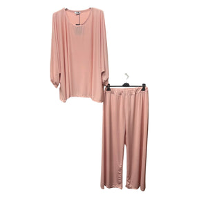 SPRING CO-ORD SET COCOON SHAPE TOP & HIGH WAIST WIDE LEG PANTS ONE SIZE FITS ALL UK SIZE 10-24 - Peach is backordered and will ship as soon as it is back in stock.