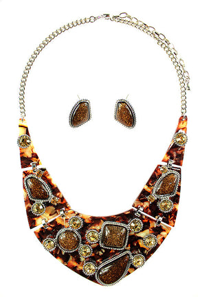 Stones Collar Necklace Set - Brown (YK1409023BR)