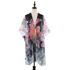 Summer Kimono with Pink Flowers - Black JYF13011BLK - Black is backordered and will ship as soon as it is back in stock.