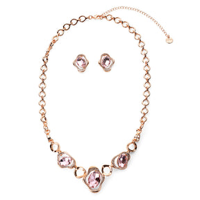 Triple Large Gem Stone Necklace Set - Rose Gold-Pink (YC2605026RG)