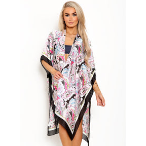 Vibrant Pattern Kimono with Border - Black JYF13009BLK