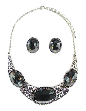 Vintage Large Oval Stone Collar Necklace Set - Grey (YK1406047GY)